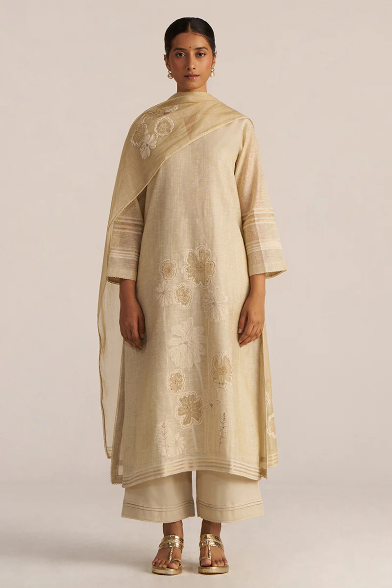 Fog Beige Woven Kurta Set