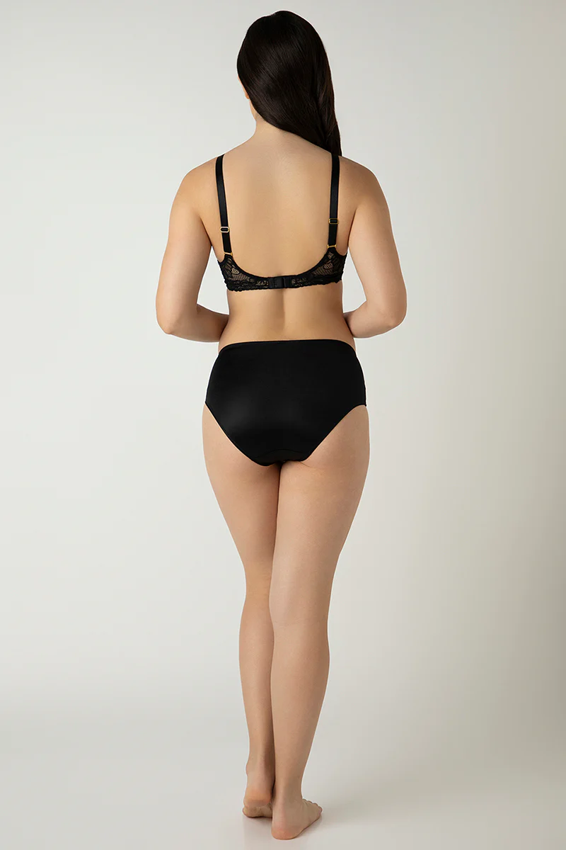 Folded mesh detail at the neckline to give a subtle coverage & support, together with a chic look