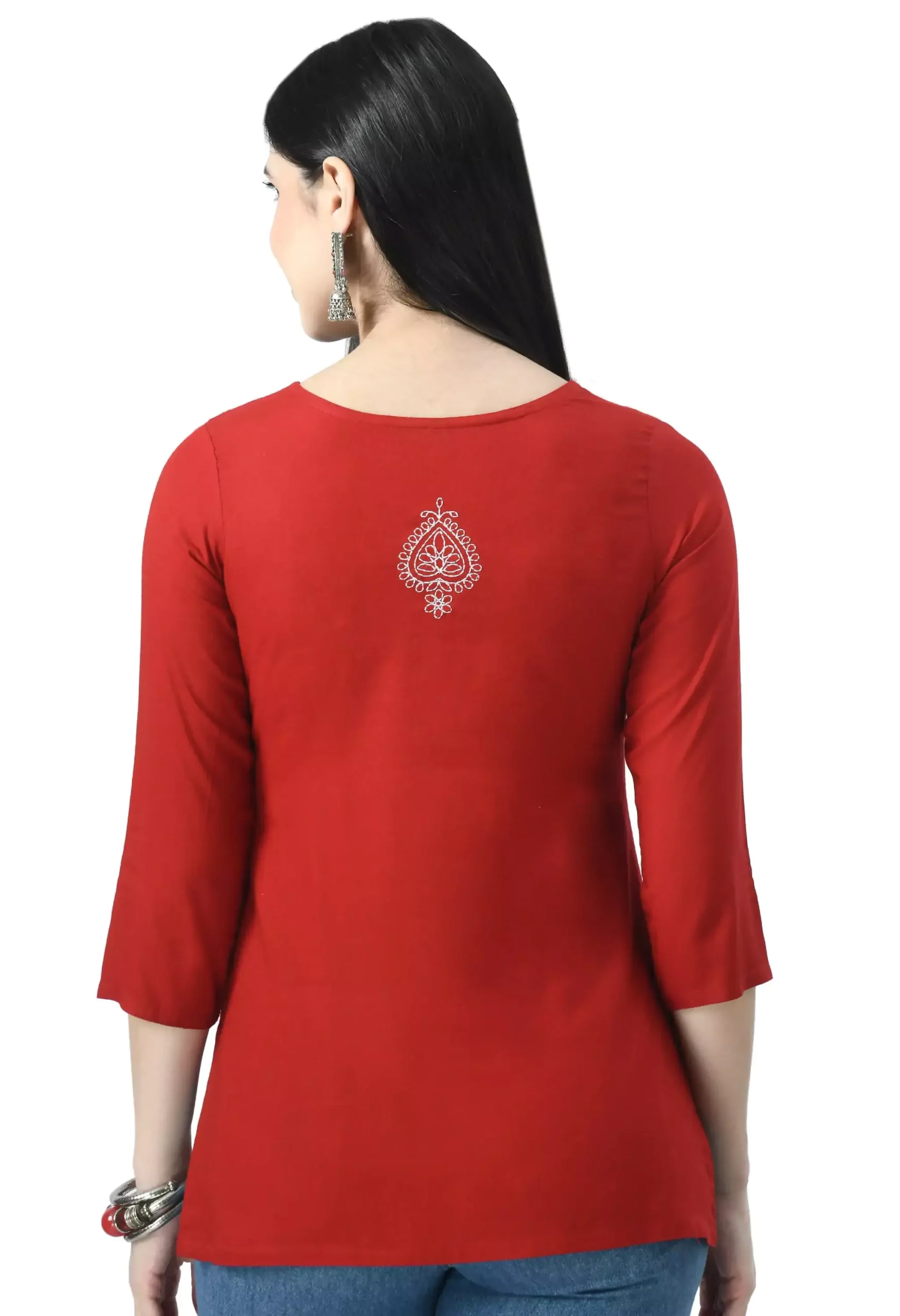 Red Chikankari Short Kurti