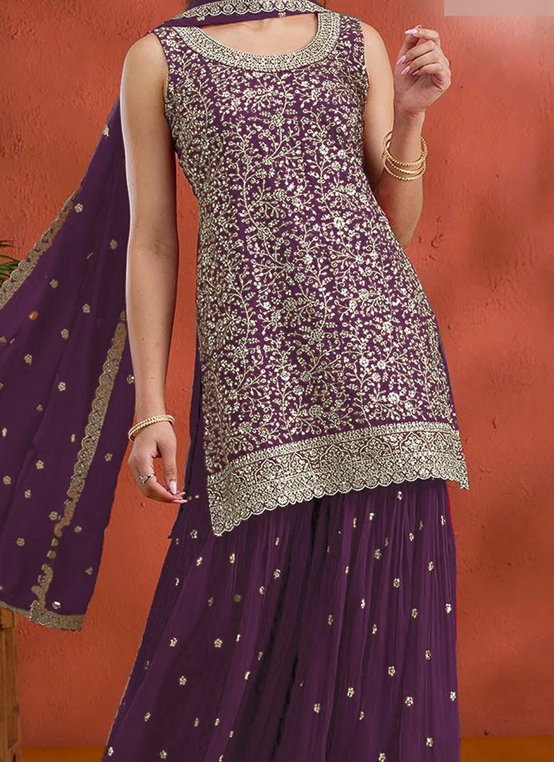 Purple Georgette Embroidered Sequin Palazzo Set Festive Wear ₹2,500.00