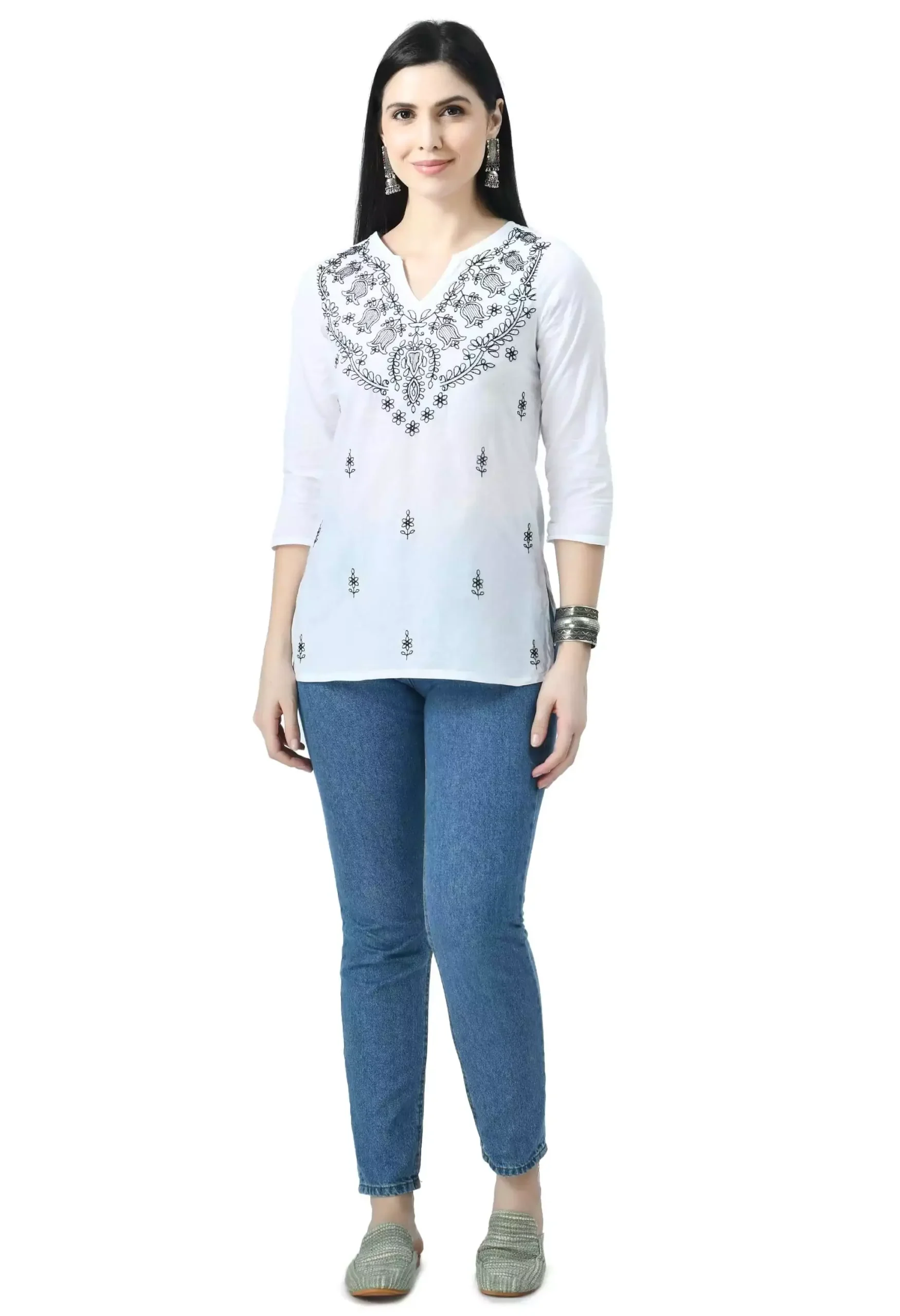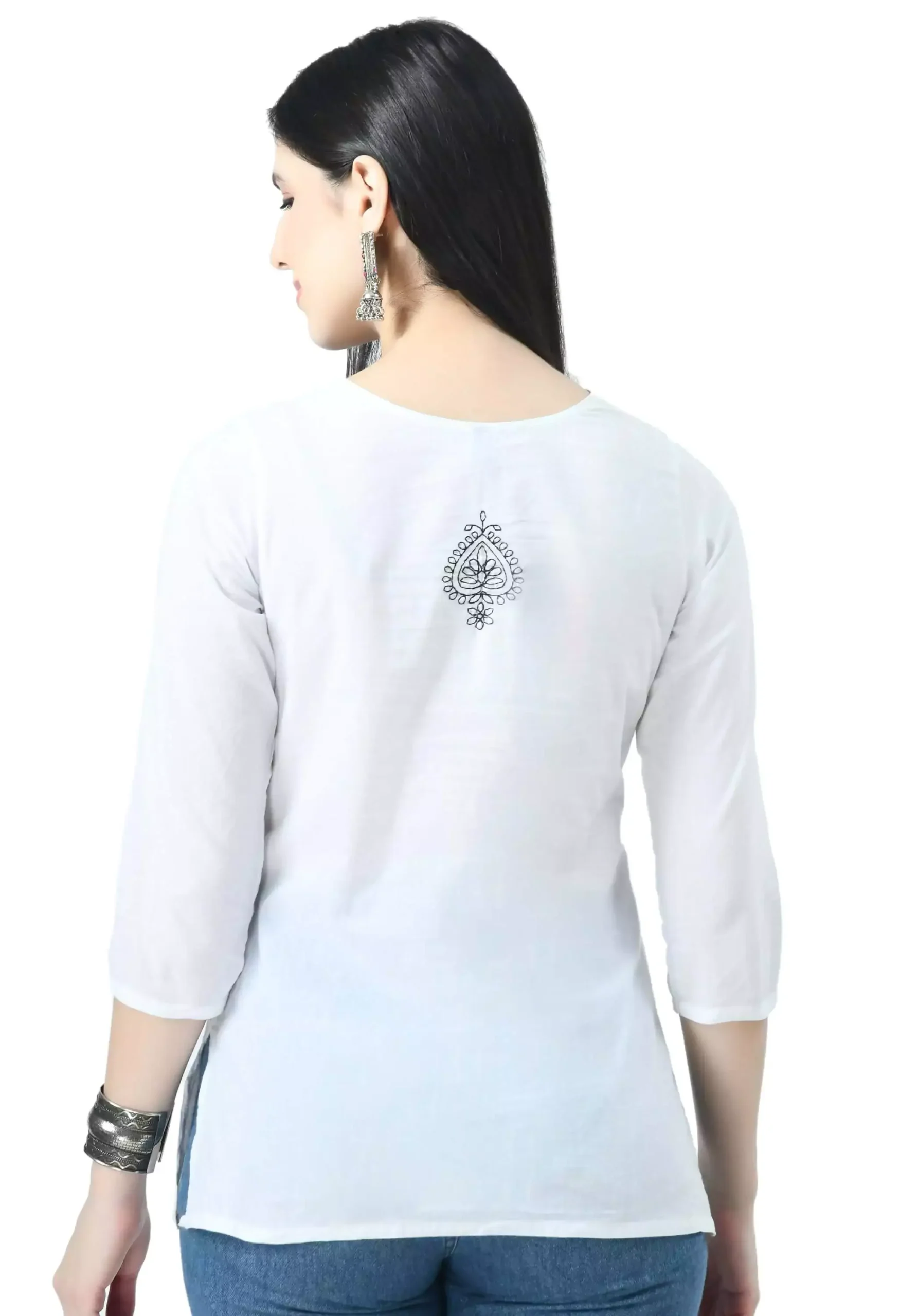 White Kashmiri Embroidered Short Kurti