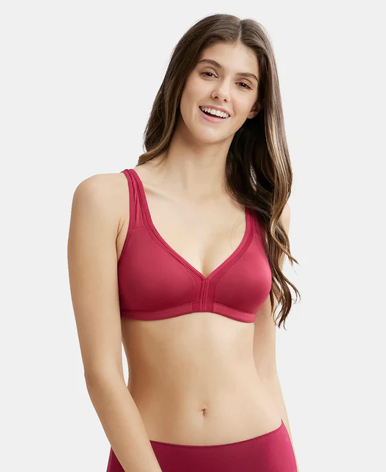 Wire free Non Padded Soft Touch Microfiber Elastane Stretch Full Coverage Everyday Bra with Stylized Mesh Panel